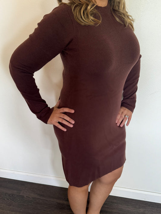 Slim Fit Mock Neck Side Slit Sweater Dress