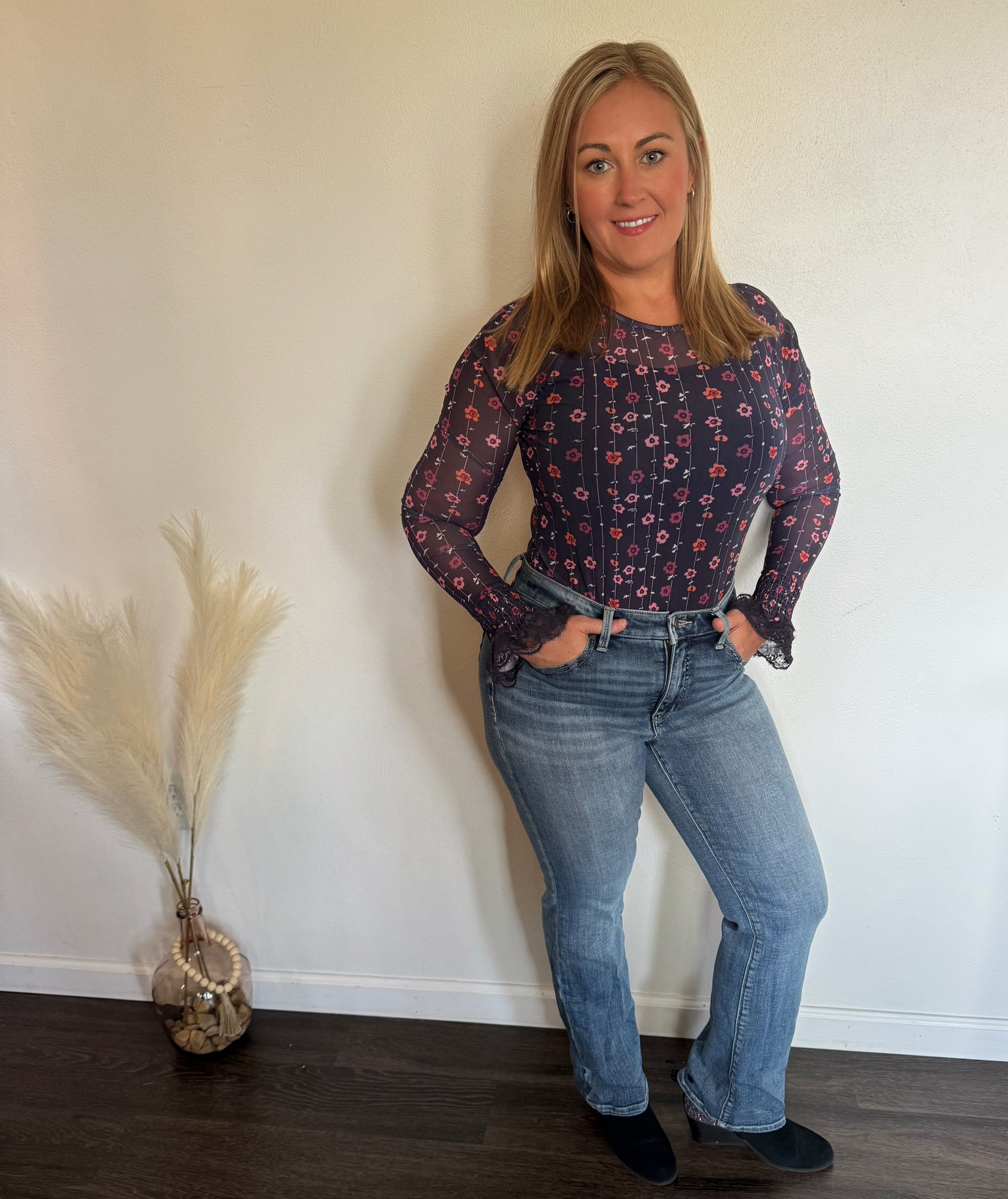 Material 95%Polyester+5%Elastane Style Casual Pattern Floral Occasion Daily Season Pre-Fall 🌸 Floral mesh creates a flirty, sheer look. 👗 Slim fit accentuates your curves elegantly. ✨ Smocked cuffs add stylish, gentle volume.