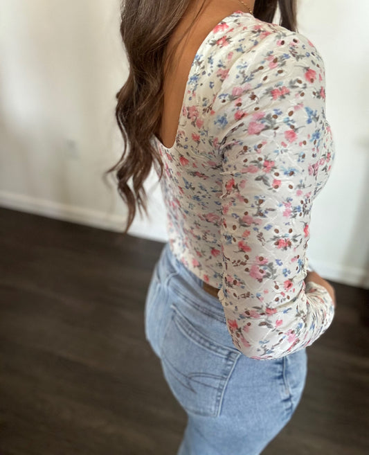 Chestnut Ruffle Tiered Floral Sleeve Blouse